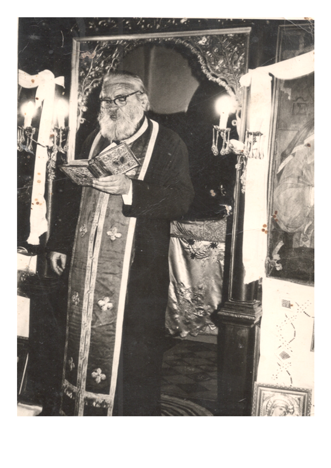 π. Σωτήρης Ανυφαντής στην Ωραία Πύλη του παλαιού ναού της Παναγίας |